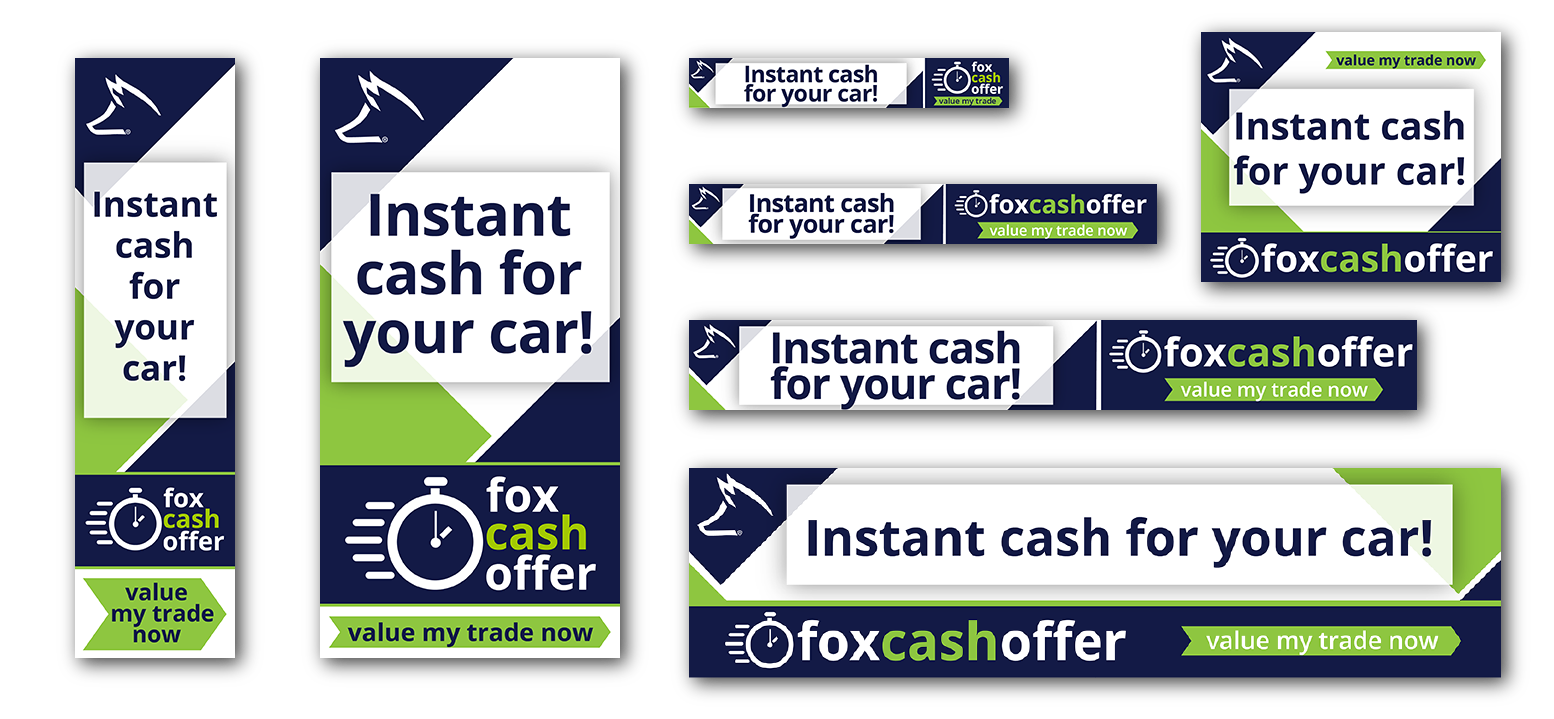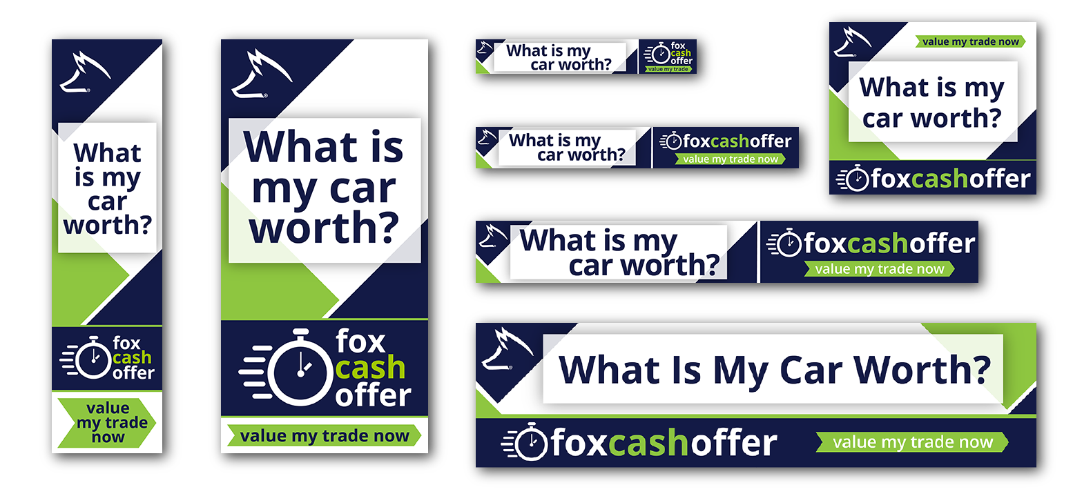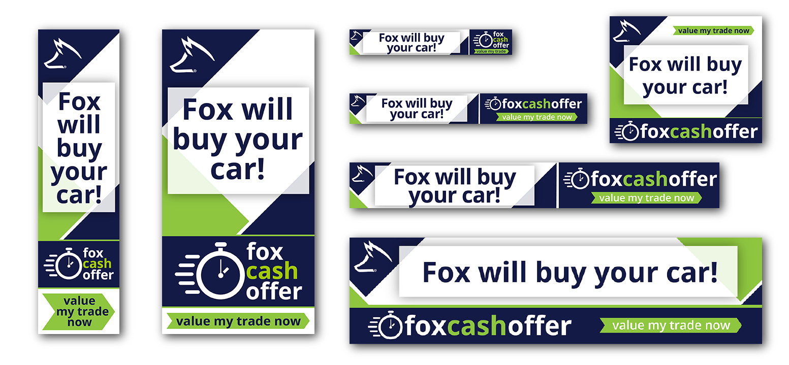 Fox Cash Offer, a program created for Fox Motors, was advertised using a multi-media campaign. Digital banner ads were utilized to promote the ease of getting an offer on your vehicle in an effort for the Fox Motors retail locations to build their pre-owned vehicle inventory.